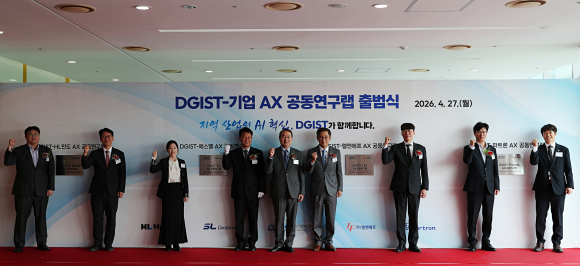 DGIST가 지난 27일 연구행정동 국제회의장에서 에이치엘만도㈜, 에스엘㈜, ㈜엘앤에프, ㈜파트론 등 4개 주요 기업과 함께 'DGIST-기업 AX 공동연구랩 출범식'을 개최하고, 지역 산업의 인공지능 전환(AI Transformation, AX)을 본격 추진한다.