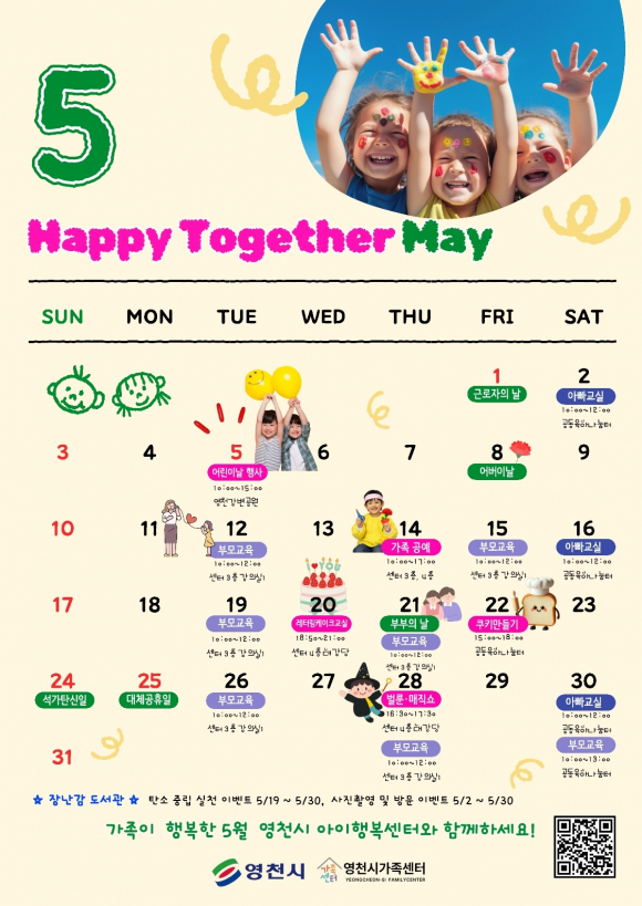 | 영천시가 5월 가정의 달을 맞아, 아이와 가족이 함께 즐길 수 있는 ‘아이행복 통합 페스타’를 운영한다.