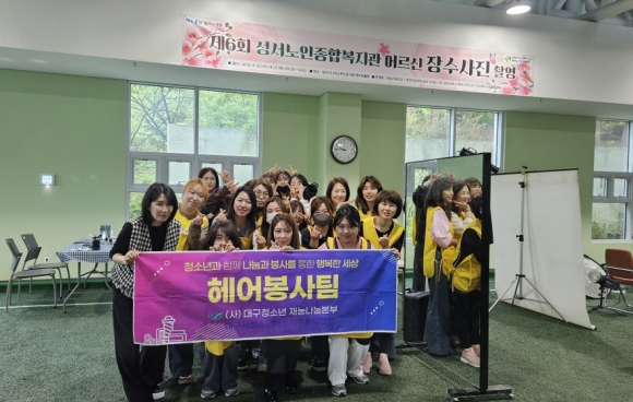 대구공업대(총장 이별나) 헤어디자인과 학생들이 지난 22일 성서노인종합복지관에서 어르신을 위한 장수사진 스타일링 봉사활동을 진행했다.