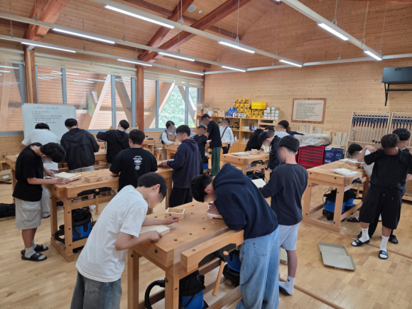 | 상주 성주봉자연휴양림 상주목재문화체험장과 힐링센터에서 지난 27일 안동경덕중 재학생 150여 명이 독서대 만들기 체험과 숲 해설 체험을 진행했다.