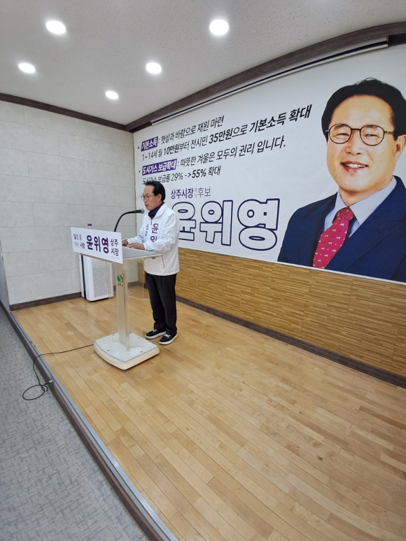 윤위영 상주시장(무소속, 사진) 후보가 지난 28일 상주시 브리핑센터에서 출마 선언과 함께 기자 회견했다.