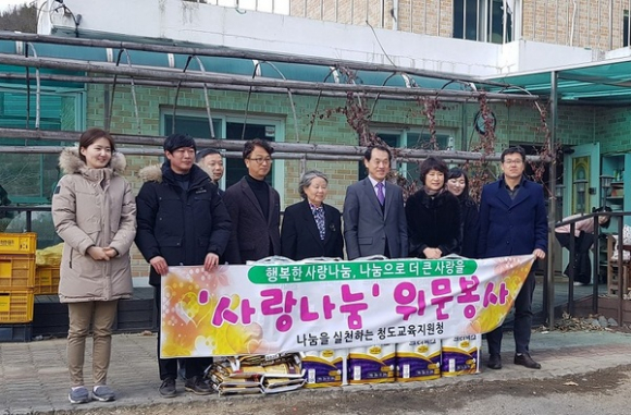 청도교육지원청(교육장 정군석)은 12일 서로 나누며 이웃과 함께하는 따뜻한 설을 만들기 위해 풍각면에 소재한 ‘사랑의 집’을 찾아 각종 위문품을 전달하고 시설을 이용하는 아동들을 격려했다.
