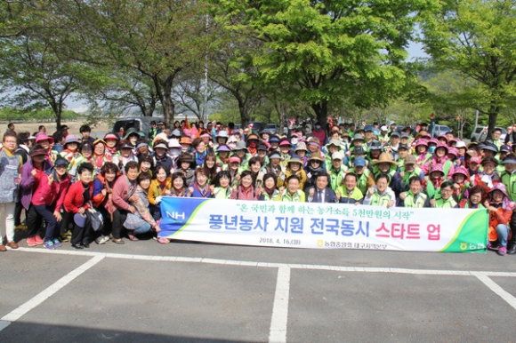 경북농협(본부장 여영현)과 대구농협(본부장 이재식)은 본격적인 영농철 도래를 전 국민에게 알리고 범국민적인 농촌일손돕기 붐을 조성하기 위해 지난 16일 '풍년농사 지원 전국동시 스타트 업' 행사를 각각 칠곡군 북삼읍, 달성군 유가읍에서 개최했다. 이날 행사는 “온 국민과 함께하는 농가소득 5천만원의 시작”이라는 부제 아래 범농협 임직원과 자원봉사단체, 칠곡·달성군청 공무원 등이 참여해 농업인의 풍년농사 지원 결의를 다졌다. 경북 칠곡군 북삼읍 일원에서는 여영현 경북농협 본부장·백선기 칠곡군수·관내 조합장·칠곡군청 공무원, 자원봉사자 등 500여명이 참석 했고, 대구 달성군 유가읍 일원에는 이재식 대구농협 본부장·김문오 달성군수·관내조합장·달성군청 공무원, 자원봉사자 등 300여명이 참석해 ▲결의문 낭독 ▲풍년농사 지원 결의를 다짐하는 퍼포먼스 ▲농기계 전달식(경북:36억원, 대구:4억원 상당) 등을 갖고 대규모 일손돕기를 펼쳤다. 이날 일손돕기에 참석한 자원봉사자들은 풍년농사지원을 위해 규산질 비료 살포작업과 폐비닐 수거, 마늘논 잡초뽑기, 가지하우스 스프레이 작업, 환경정화 활동 등을 통해 4월의 바쁜 농촌현장에 활기를 더했다. 또한 신개념 농기계 보급 확산으로 농약 중독사고 방지, 인건비 절감 및 영농철 일손지원을 통해 농업소득의 획기적 증대를 위해 경북농협과 대구농협은 각각 36억원, 4억원 상당의 농기계를 관내 지역농협에 전달했다. 일손돕기에 참여한 자원봉사자 이경숙(여, 53세)씨는“본격적인 영농철을 앞두고 이러한 뜻 깊은 행사에 참여하게 되어 보람찬 하루를 보냈다 며 앞으로도 종종 참석해 일손이 부족한 농촌에 작은 보탬이라도 될 수 있도록 노력하겠다”고 말했다. 여영현 경북농협 본부장은“금번 농촌일손돕기 발대식과 지역농협에 전달한 농기계가 우리 농업인의 영농활동에 도움이 되기를 바라며, 우리 농협은 농업인 영농지원에 적극적으로 나설 것”이라고 밝혔다. 한편 경북농협은 원활한 영농인력 공급을 위해‘농촌인력중개센터’를 운영하고 있으며, 2017년 11만명의 영농인력을 무료로 중개·알선했다. 김만영 기자 kegis1@naver.com ▲ 대구농협 풍년농사 지원 전국동시 스타트 업(달성군 유가읍)행사 참석자 기념촬영 |