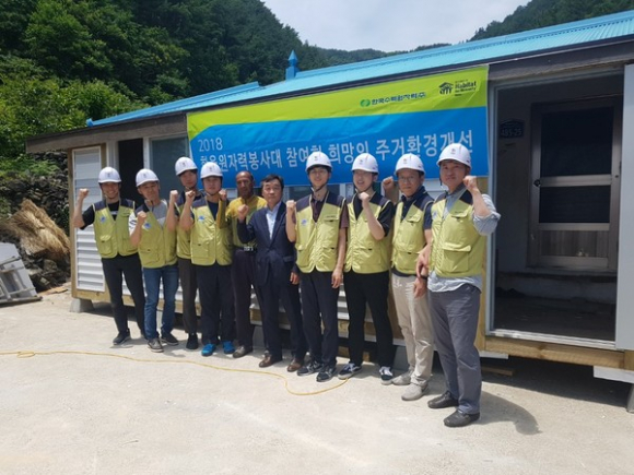 울진군은 한국해비타트와 한울원자력본부가 지난 18일 2018년 주거환경개선사업 대상 가구로 선정된 금매2리 소재 주택의 보수작업을 마치고 준공식을 가졌다. 해비타트는 무주택 가정 및 열악한 주거환경에 처해있는 사람들의 주거문제 해결을 목적으로 설립된 봉사단체로써 전 세계 70개 국가에서 전개하고 있으며, 국내에는 전국 10개 지회가 설립돼 총 35만명 이상의 자원봉사자가 참여하고 있다. 한울원자력본부는 사내 자원봉사자들을 통해 한국해비타트와 함께 주거환경개선사업을 실시하고 있는데, 지난 5월 금강송면에 이어 6월에는 매화면의 주거환경 위기가구에 전면적인 주택보수 작업을 진행했다. 울진=김경호 기자 huripo1349@hanmail.net
