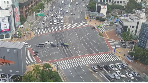 대구시는 사고 다발 교차로에 대대적인 개선 작업을 벌였다. 사진은 계산오거리 모습.