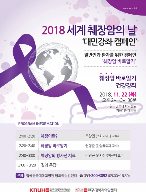 칠곡경북대학교병원은 22일 병원 지하1층 대강당에서 ‘췌장암 바로알기 건강강좌’를 가진다.