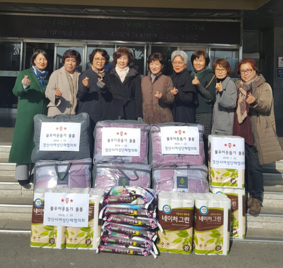 여성단체협의회는 지난 11일 ‘희망 2019 나눔 캠페인’에 참가해 이웃 돕기 성금 50만원을 기탁한데 이어, 지난 22일 경산시 관내 어려운 이웃 6가구에 60여만원 상당의 생필품을 전달해 이웃사랑을 실천하고 있다.