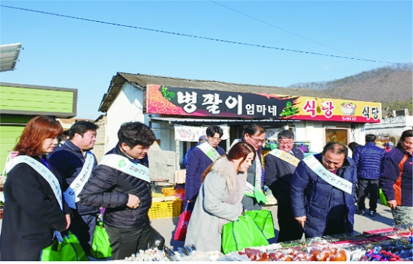 군위군 의흥면(면장 박정찬)은 30일 오전 의흥전통시장에서 전 직원, 지역 주민들과 함께 설맞이 ‘전통시장 장보기’ 행사를 가졌다.