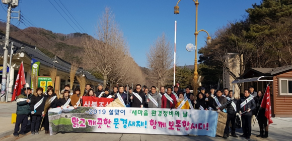 이날 행사는 민족 최대의 명절 설을 맞이해 문경새재도립공원을 찾는 관광객에게 깨끗하고 청결한 관광환경을 제공하여 다시 찾고 싶은 관광지를 조성하고자 각 단체에서 뜻을 모아 함께 대청소를 실시하게 됐다. 문경새재 상징문에서 출발하여 제4주차장 입구 진입도로 주변을 정비했으며, 쓰레기 및 생활폐기물 1톤 가량을 수거했다.