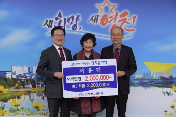 같은 날 서용덕 전 영천시보건소장이 200만원의 장학금을 보내왔다.