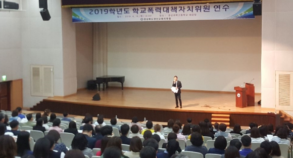 경북도경산교육지원청이 지난 18일 경산과학고등학교 대강당에서 초·중·고등학교 학교폭력대책자치위원 480여명을 대상으로 '안전하고 행복한 학교 만들기' 연수를 가졌다고 밝혔다.