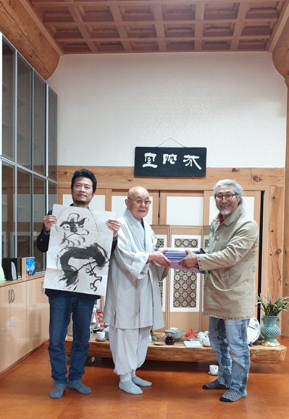 쌍산 김동욱 서예가는 24일 부처님 오신 날을 맞아 예천군 용문사(주지 청안 스님)를 찾아 달마도 108장을 기증했다.