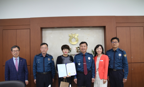 김상렬 영주경찰서장은 2일 영주농협 꽃동산지점을 방문해 112신고를 통해 보이스 피싱(전화금융사기)을 예방한 박 모(·44) 계장에게 표창을 수여하고 기념품을 전달했다.