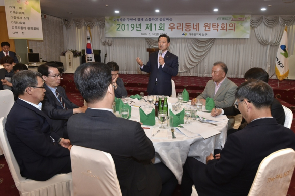 대구남구가 지난 10일 오후 현안 의제 해결을 위해 구민들과 함께 고민하고 해결방안을 모색하기 위해 '제1회 우리동네 원탁회의’를 열었다.