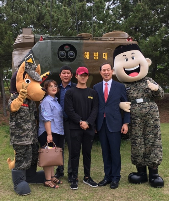 대구경북병무청이 지난 20일 경북 포항시 해병대교육훈련단에서 올해 첫 해병대 입영문화제를 개최했다. 정창근 병무청장(오른쪽 두번째)이 경기도 김포시에서 온 입영자 가족과 함께 기념사진을 찍고 있다. 대구경북지방병무청 제공