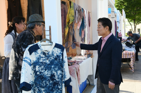 장욱현 영주시장이 풍기인견 부스를 둘러보고 있다. 영주시 제공