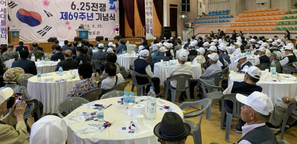 청도군25일 모계중고등학교 체육관에서 6. 25전쟁 제69주년 기념식을 개최했다.