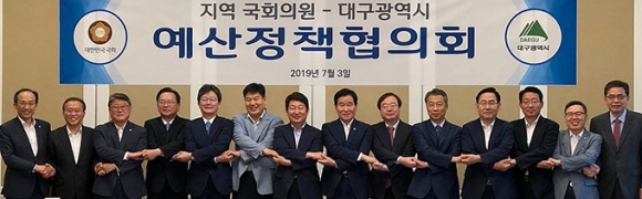 대구시와 지역 국회의원들이 지난 3일 오전 국회본관에서 내년도 국비확보를 위한 예산정책협의회를 가졌다. 하지만, 대구지역 국회의원들이 국회에서 대구시의 예산 및 현안 대응에 대해 비판을 쏟아냈다.