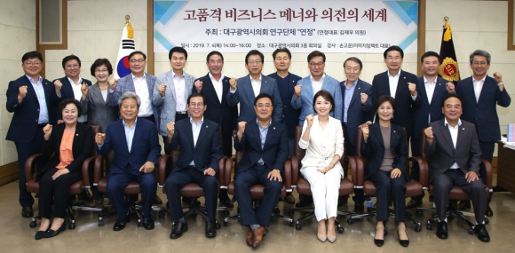 대구시의회 의원연구단체 연정이 4일 시의회 3층 회의실에서 연구단체 회원을 비롯한 전체 의원, 공무원들을 대상으로 기본소양 특강시간을 가지고 있다. 대구시의회 제공