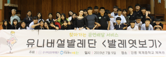 유니버설발레단의 ‘발레엿보기’는 문화 기반이 부족한 곳을 찾아다니며 발레의 역사, 발레 동작 시연, 기초 발레교육 등을 교육 봉사하는 프로그램으로 이번 ‘발레엿보기’는 문화 소외지역이자 산불피해 지역인 강릉 옥계중학교(9일), 고성 대진초등학교(10일)에서 각각 진행했다.
