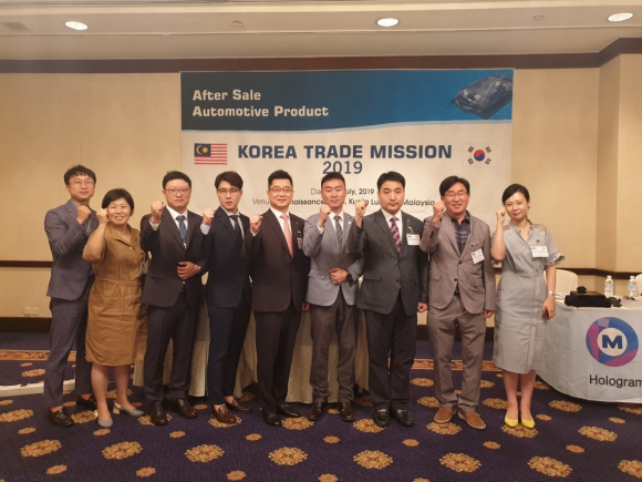 대구시는 말레이시아와 태국으로 파견한 ‘자동차부품 애프터마켓 무역사절단’이 현지에서 큰 호응 얻었다고 16일 밝혔다. 지난 9일 쿠알라룸푸르 상담회 시작 전 사절단 참가업체 관계자들이 기념사진을 찍고 있다. 대구시 제공
