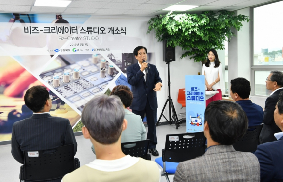 경산시는 지난 7일 청년들의 1인 미디어 콘텐츠 창작공간인 '비즈-크리에이터 스튜디오'에서 최영조 시장, 이달희 경북도 정무실장, 강수명 시의회 의장, 이재훈 (재)경북테크노파크원장, 도의원, 시의원, CJ ENM 소속 크리에이터 및 관계자 등 50여 명이 참석한 가운데 개소식을 가졌다고 밝혔다.