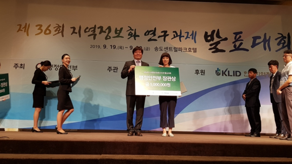 대구 북구가 '제36회 지역정보화 연구과제 발표대회'에서 빅데이터 분석을 통한 온나라 전자문서 자동배부율 제고를 주제로 행정안전부장관상을 수상하고 있다. 북구 제공