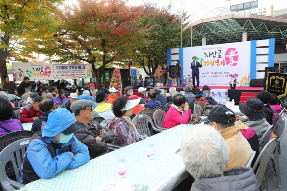 대구수성구 지산1동 희망나눔위원회와 지산종합사회복지관이 10월 ‘경로의 달’을 맞아 지난 26일 수성구 지산종합사회복지관 광장에서 ‘2019 지산골 함께해효(孝) 축제’를 개최했다.