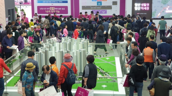 특히 화창한 가을 날씨가 이어진 주말엔 가족 단위의 방문객들로 견본주택 내부에는 냉방기를 가동해도 밀려드는 고객들로 열기가 후끈후끈한 모습이었다.