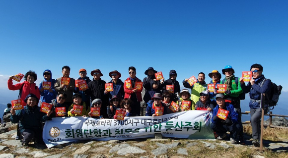 국제로타리 3700지구가 지난 27일 무주 덕유산에서 구순구개열 환아 수술기금 마련을 위해 '가을등반대회'를 가지고 있다. 국제로타리 3700지구 제공