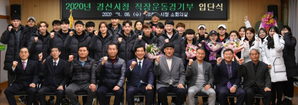 경산시기 지난 8일 시청 소회의실에서 선수·체육회 관계자 등 40여 명이 참석한 가운데 직장운동경기부 신입선수 입단식을 가졌다.