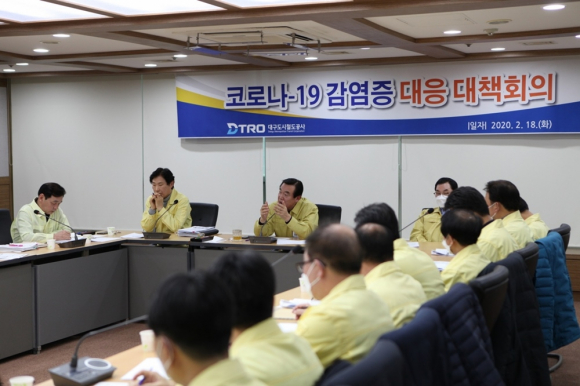 대구도시철도공사는 대구에 코로나19 확진자가 발생한 지난 18일 본사 5층 회의실에서 긴급 확대간부회의를 개최하고, 도시철도 이용시민 보호를 위해 보다 강화된 예방대책을 추진키로 했다고 밝혔다.